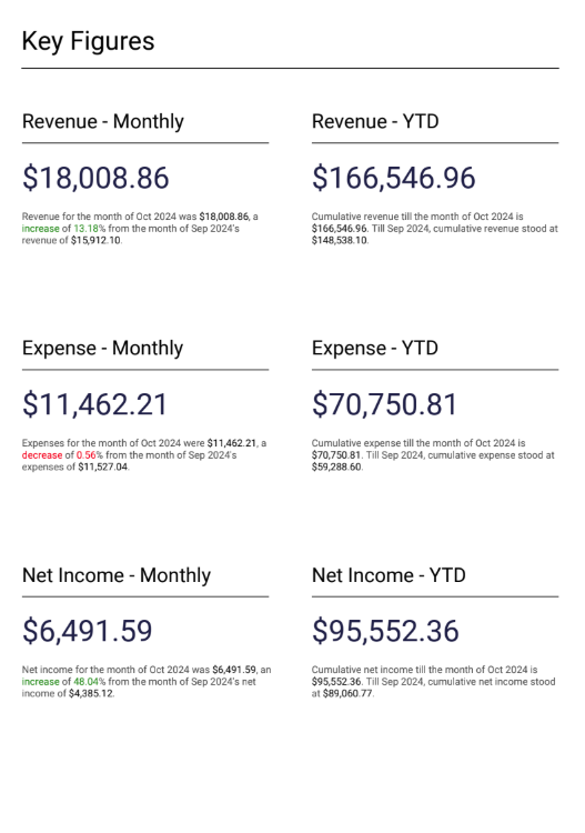 Explore professionally crafted financial reports that showcase the power of our AI-driven insights and beautiful design.