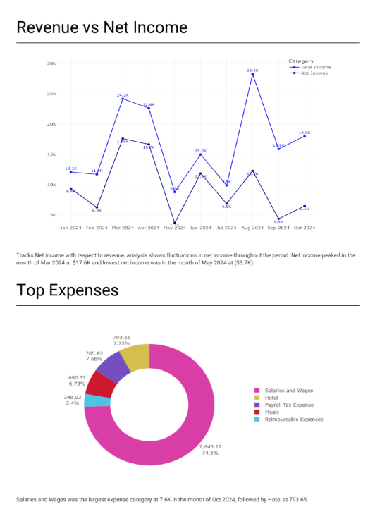 The platform employs AI algorithms that behave like a seasoned CFO. It automatically organizes and categorizes your financial data,compares figures against industry benchmarks and generates actionable recommendations on cash flow, growth opportunities and risk management